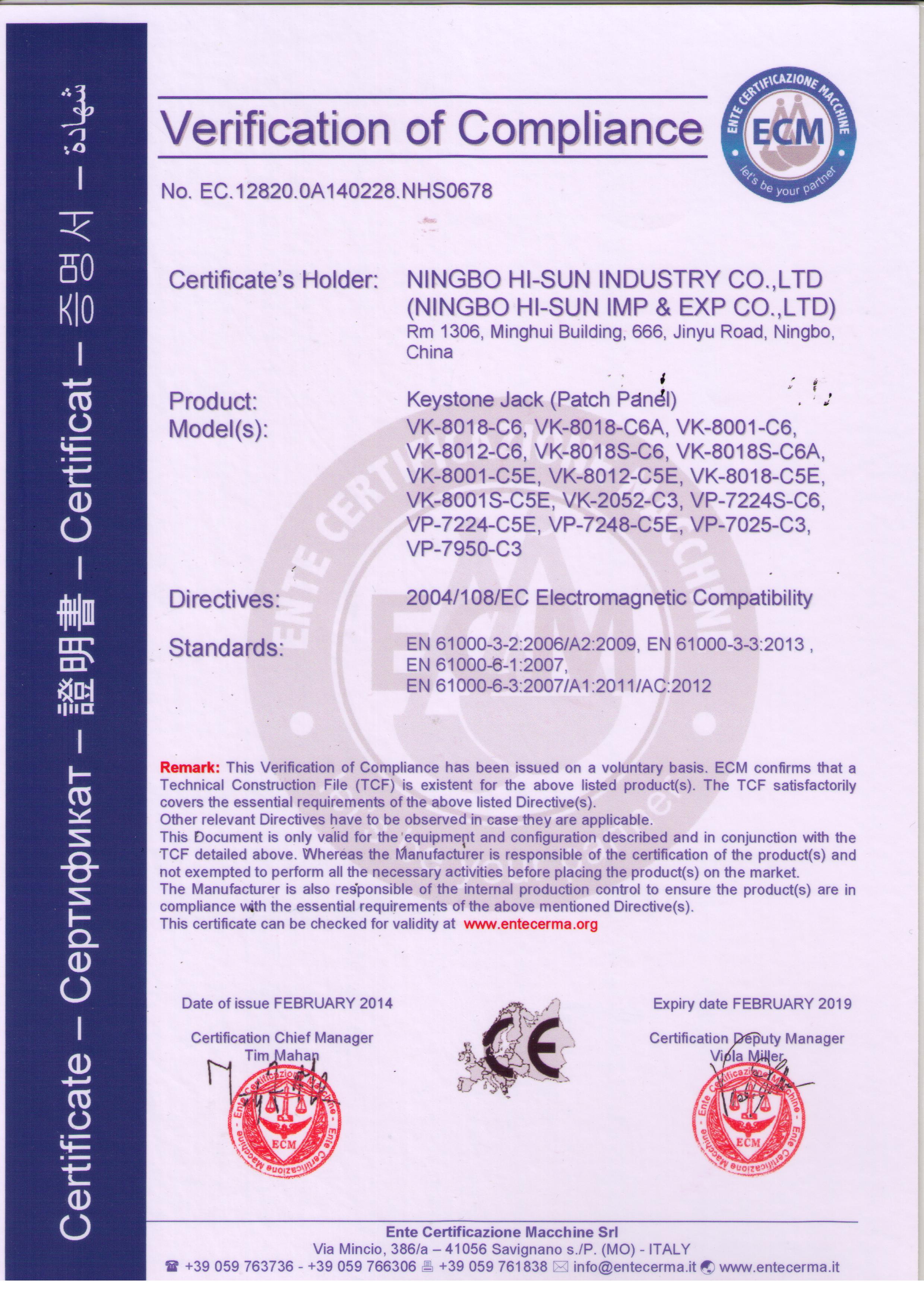 Founded in 2003,Ningbo Hi-sun Industry Co., Ltd is a proficient manufacturer of networking and Telecommunications products, including Cabinet, lan cables, patch cord, patch panel, keystone jack, fiber optical. Manufacturing innovative products of consistent quality and high performance has attracted buyers from Europe, the American, Australia and the Middle East.