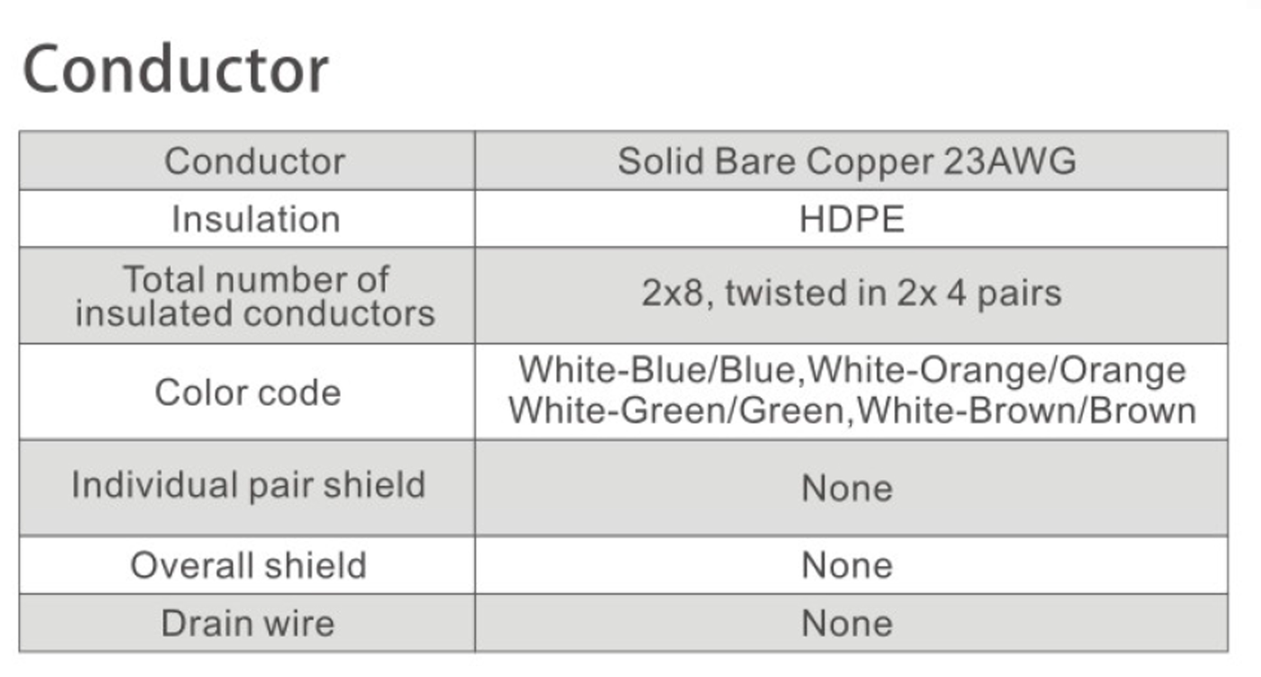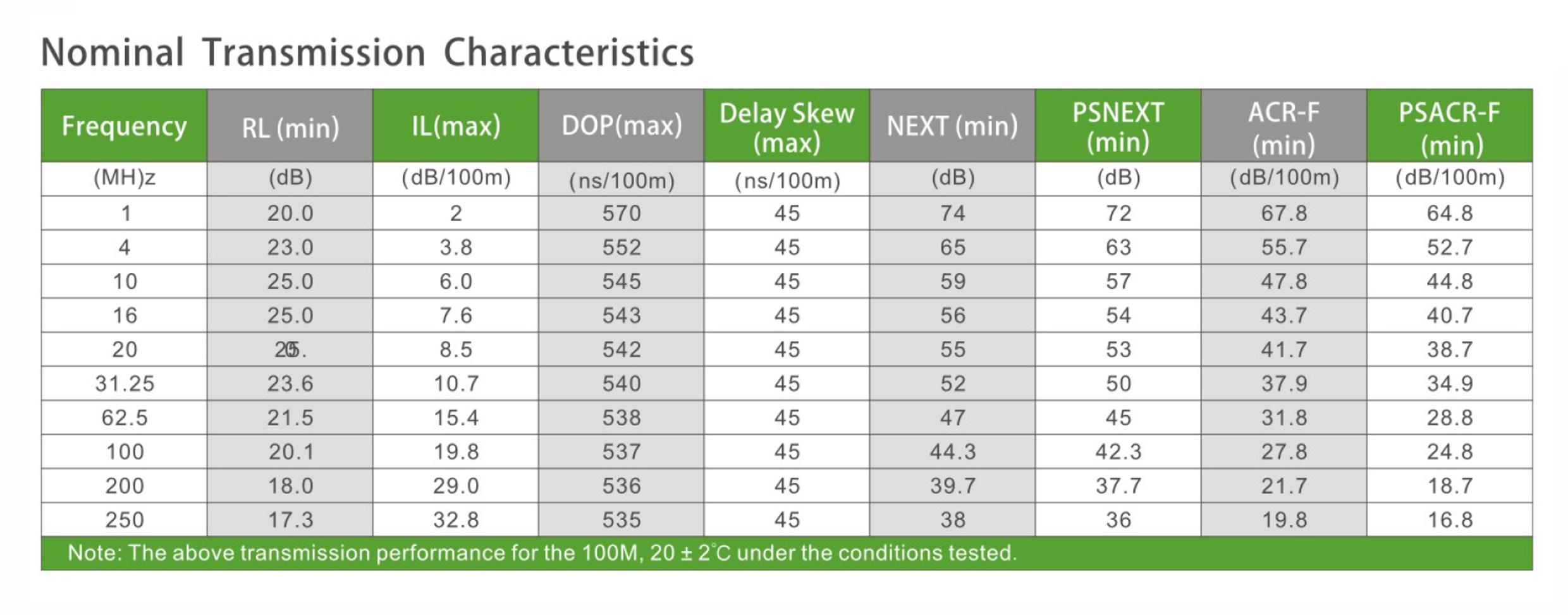 Pair-to-Gruond Capacitance Unbalance: 330(pF/100M).