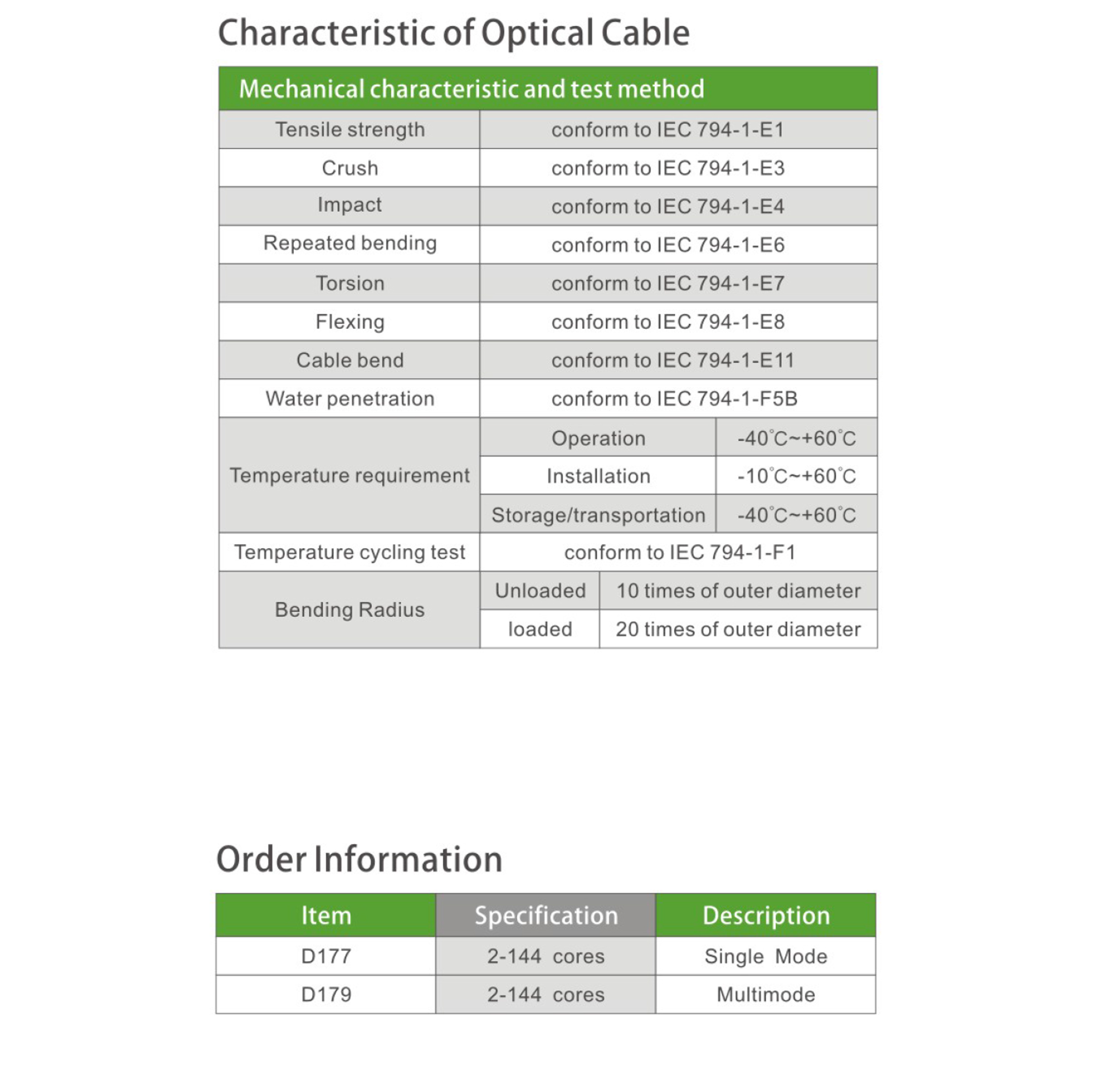 ■ Cut off wavelength of cabled fiber (λcc): ≤1260μm