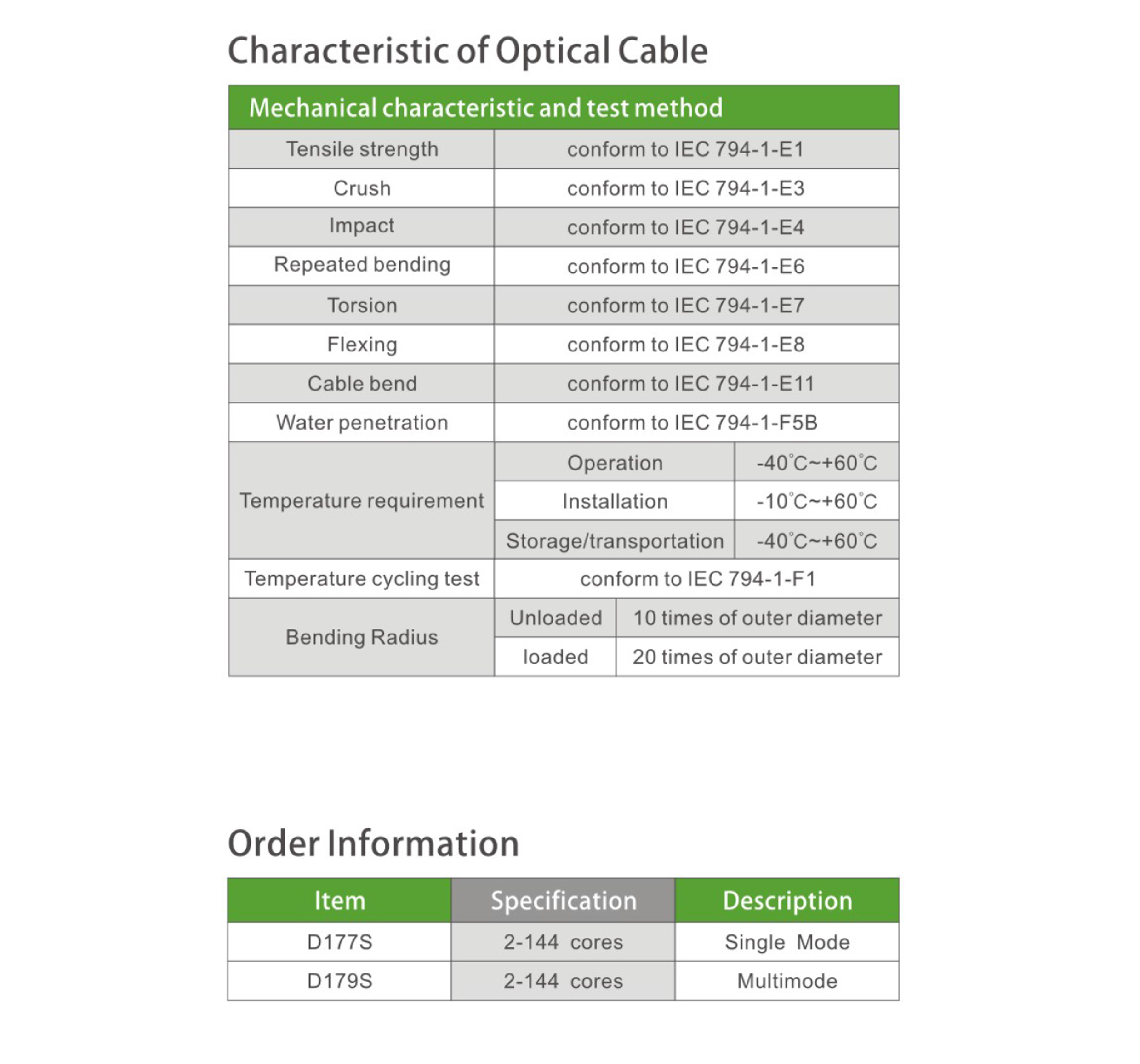 ■ Cut off wavelength of cabled fiber (λcc): ≤1260μm