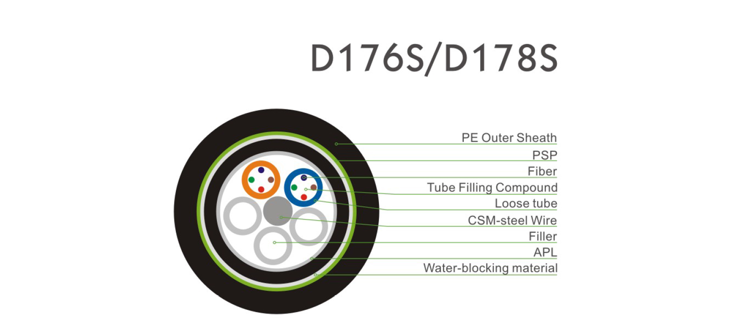 ■ The fibers are placed in a loose tube made of PBT. The