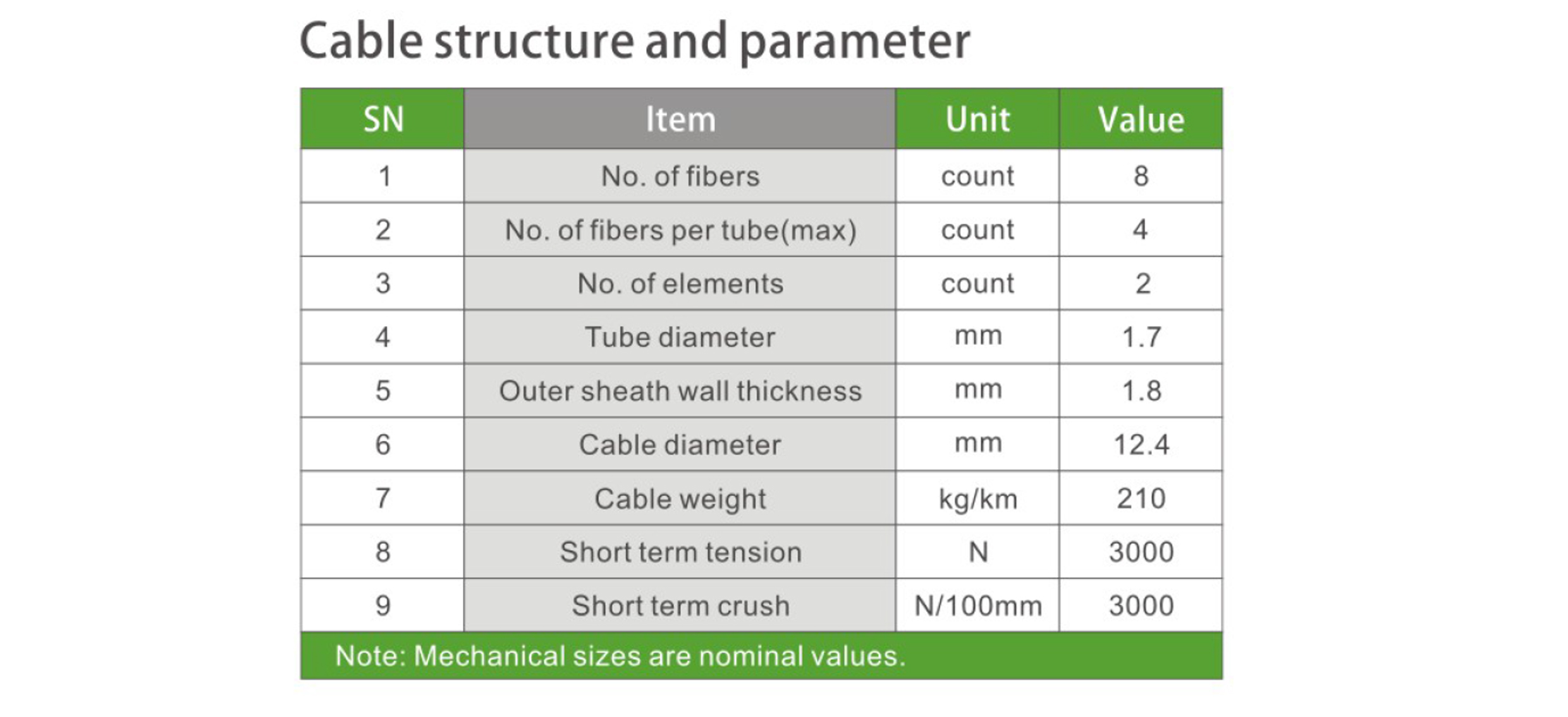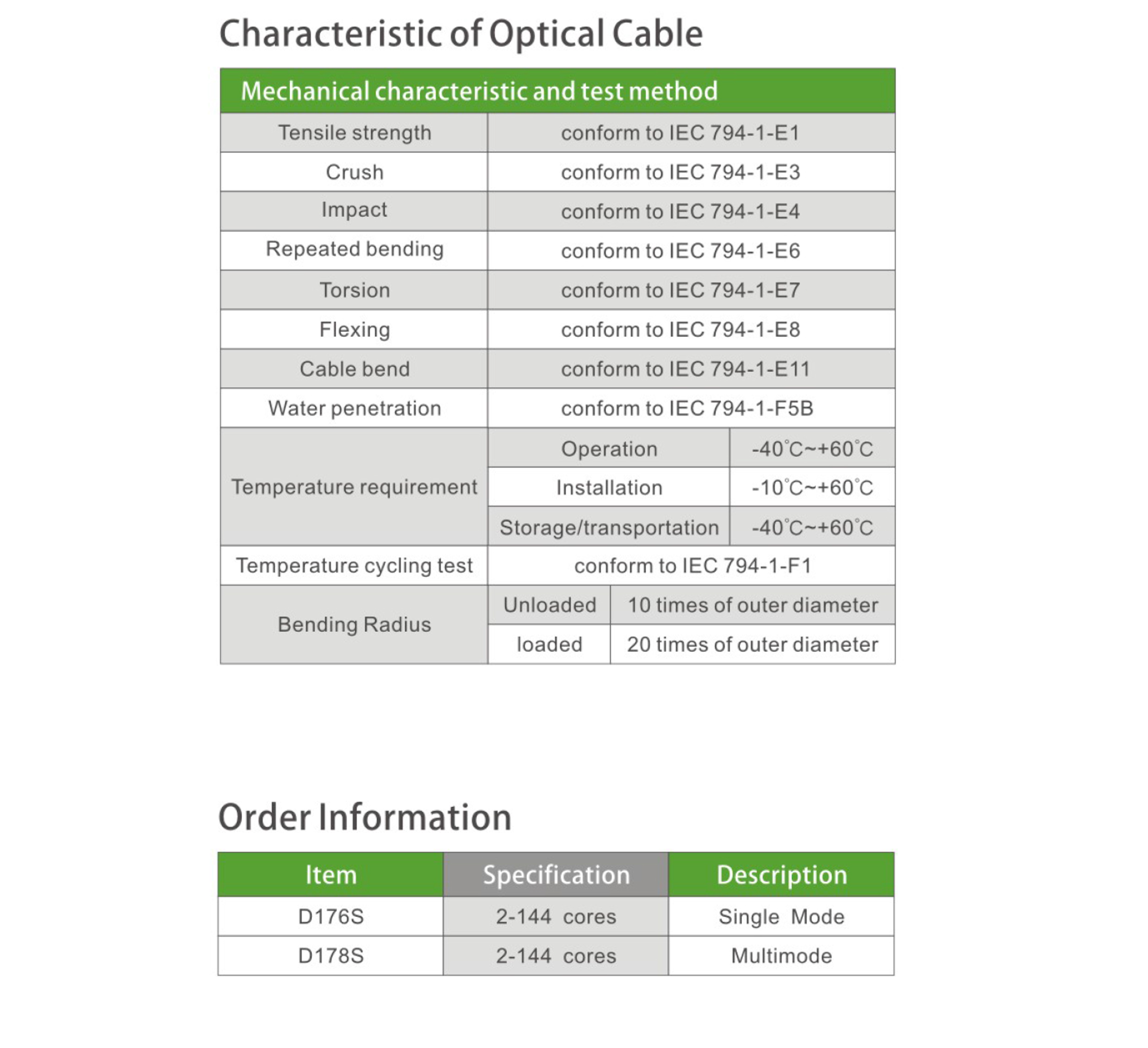 ■ Cut off wavelength of cabled fiber (λcc): ≤1260μm