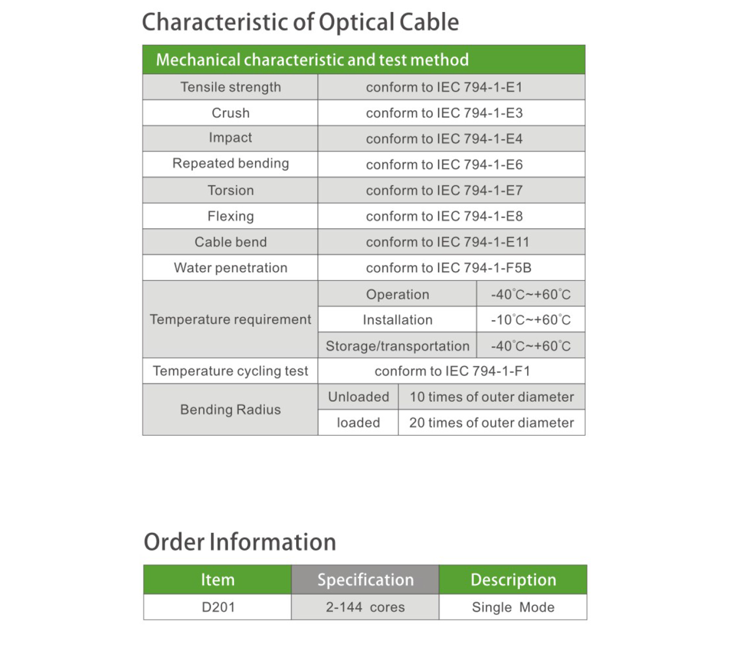 ■ Cut off wavelength of cabled fiber (λcc): ≤1260μm