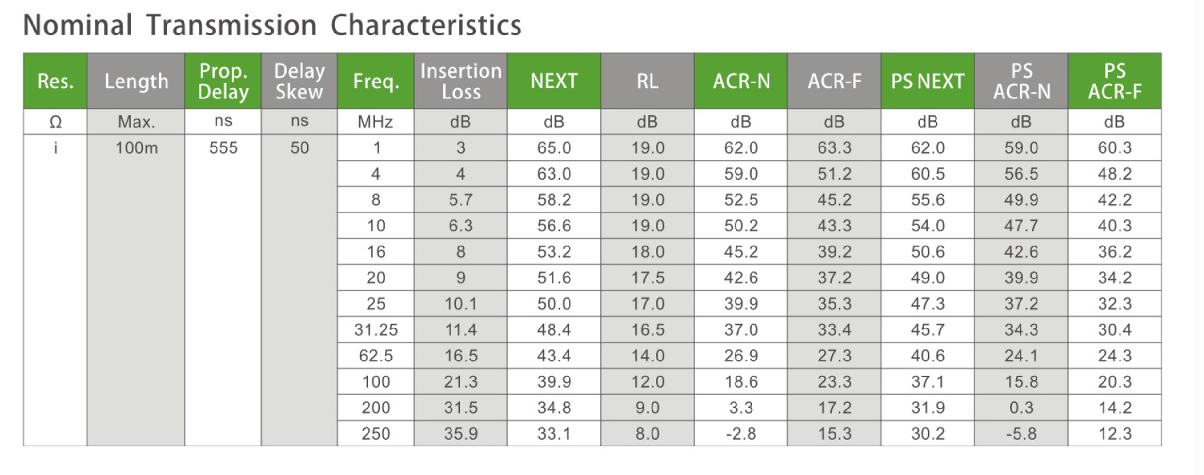 ANS1/TIA-568B Category 6and ISO/EIC specifications.