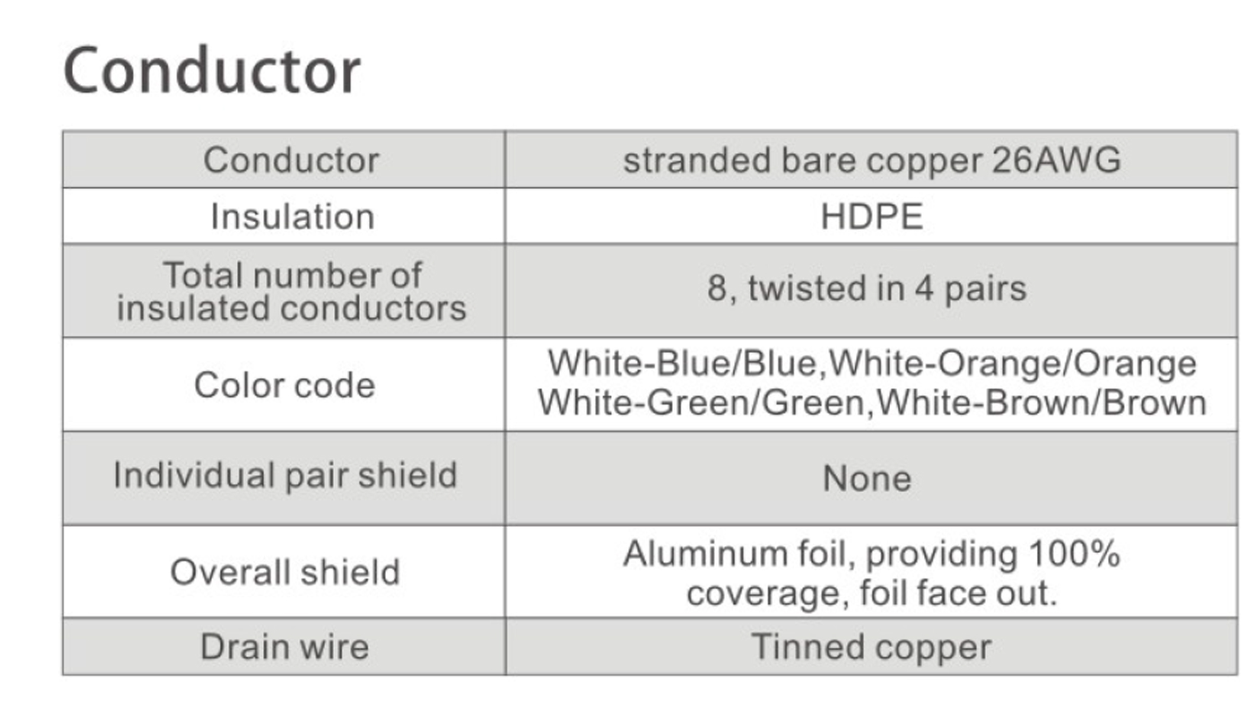 ANS1/TIA-568B Category 6and ISO/EIC specifications.