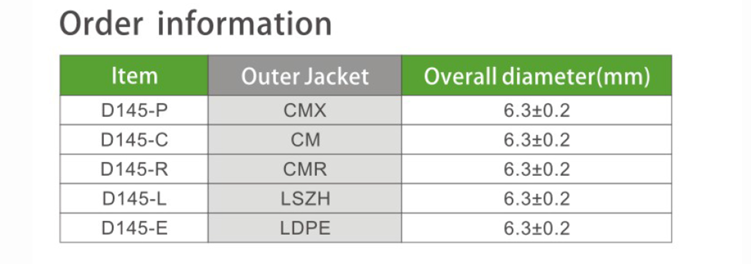 Cotor Availability: Additional cable colors available.