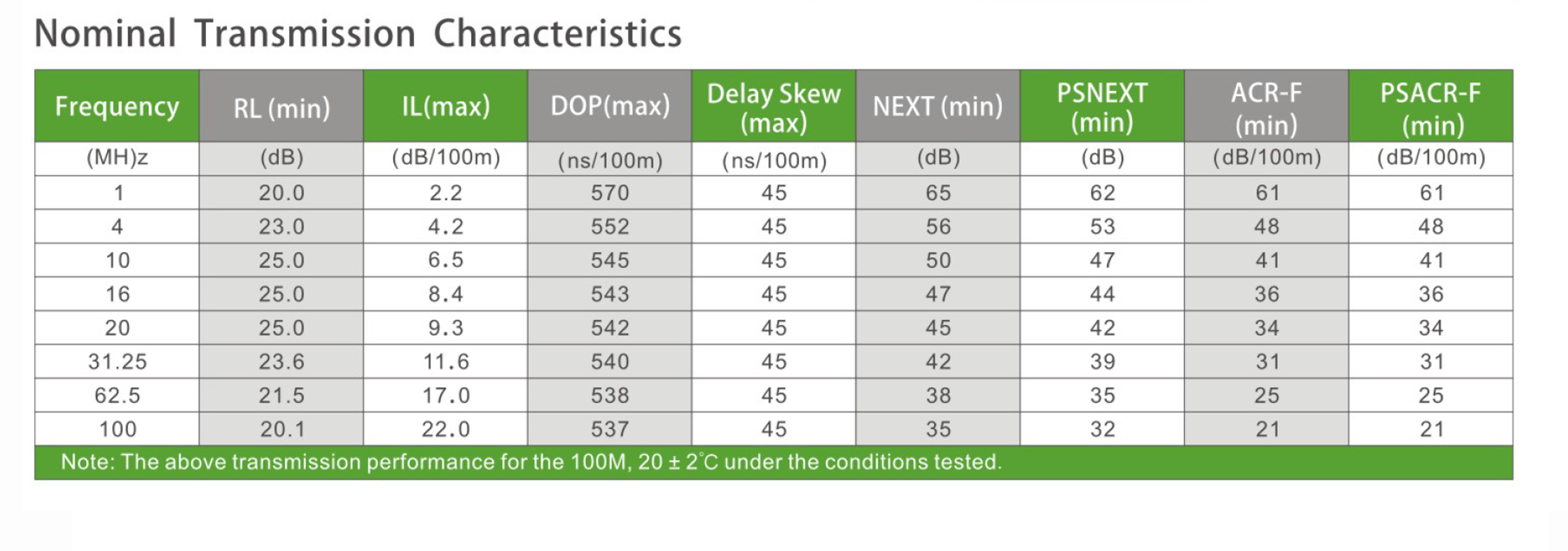Exceeds ANSI/TIA-568-C.2 and IS011801 2nd Edition