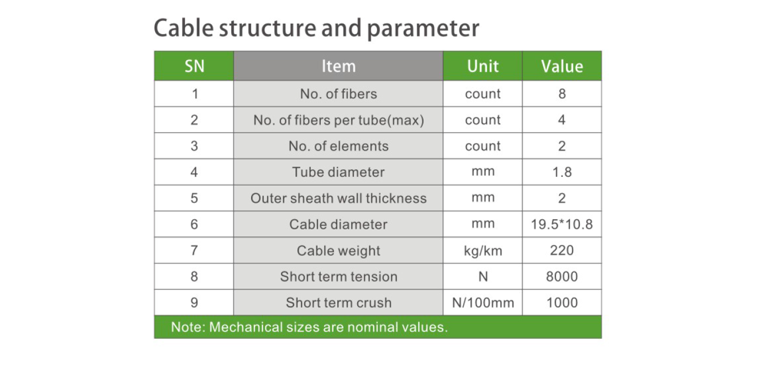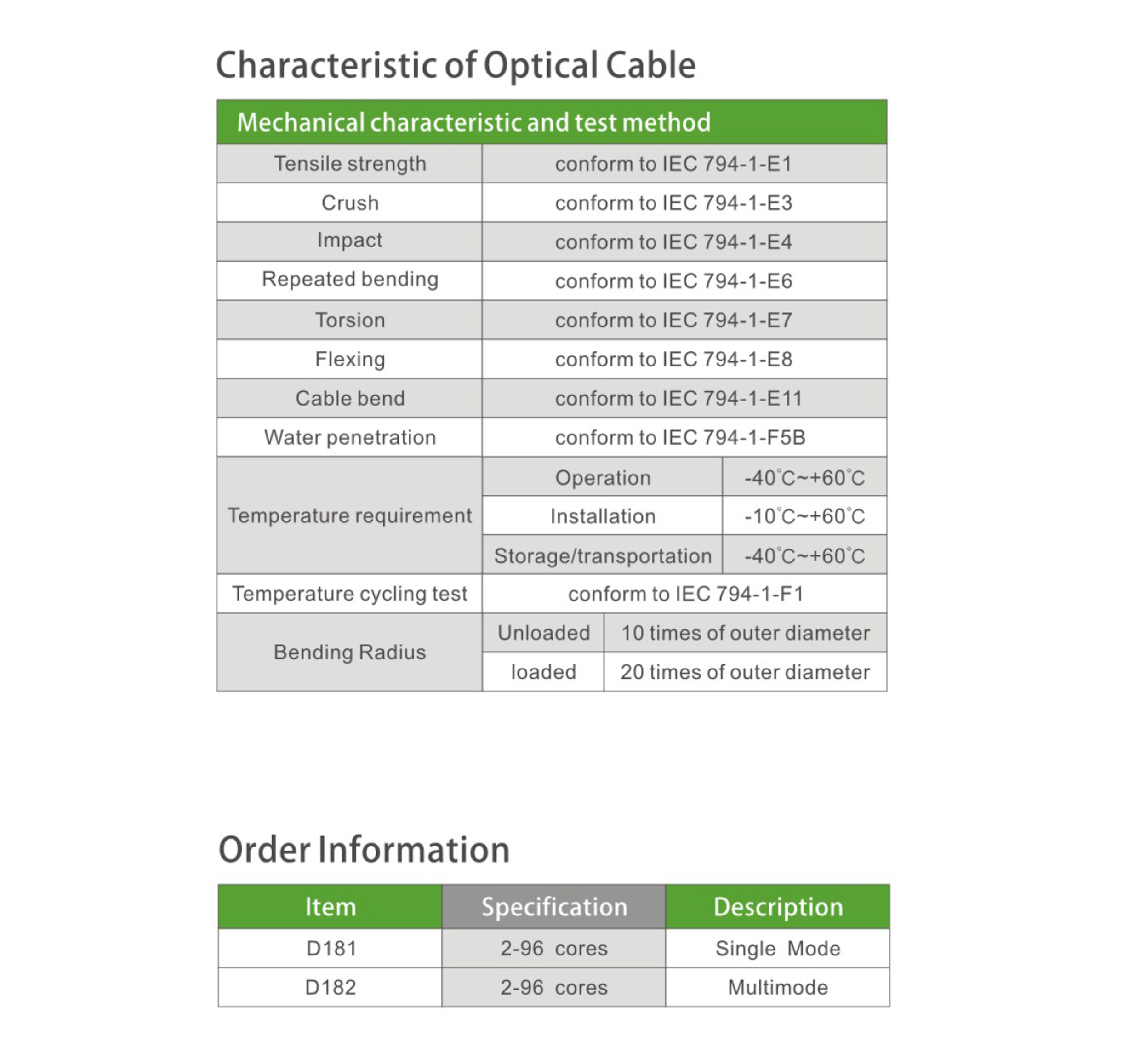 ■ Cut off wavelength of cabled fiber (λcc): ≤1260μm