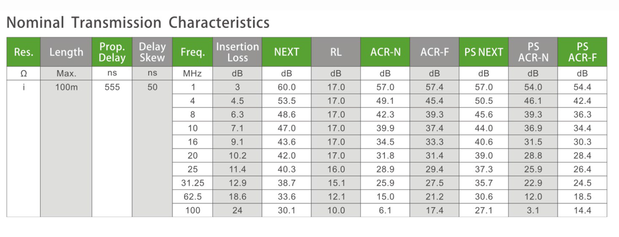 ANS1/TIA-568B Category 5e and ISO/EIC specifications.